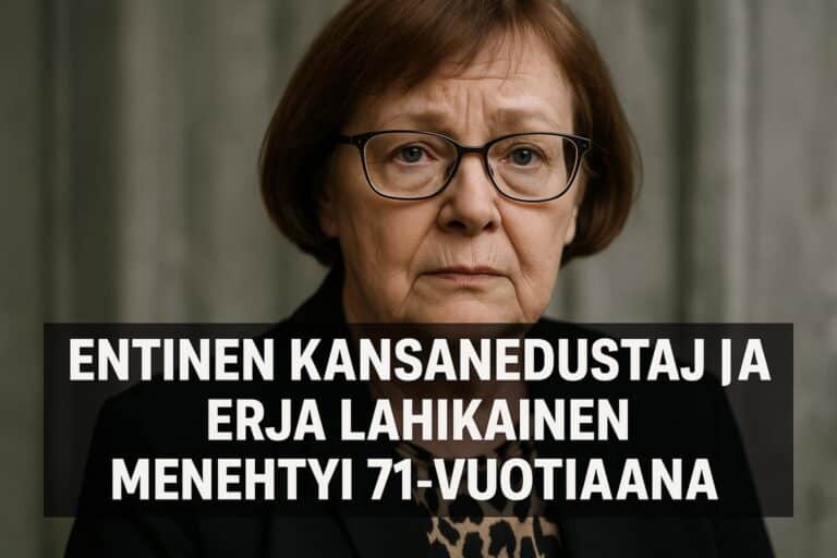 Suomen poliittinen kenttä on menettänyt merkittävän vaikuttajan, kun entinen SDP:n kansanedustaja Erja Lahikainen on kuollut 71-vuotiaana. Lahikainen edusti Mikkelin läänin vaalipiiriä vuosina 1991–1995, jolloin hän teki merkittävää työtä eduskunnassa.
