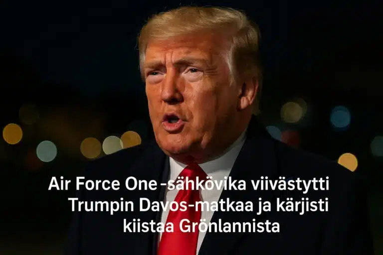 Donald Trumpin Air Force One joutui palaamaan sähkövian vuoksi kesken matkan Davosiin. Viivästys osuu hetkeen, jolloin presidentti kärjistää kiistaa Grönlannin hankkimisesta ja uhkaa liittolaisia lisätulleilla.