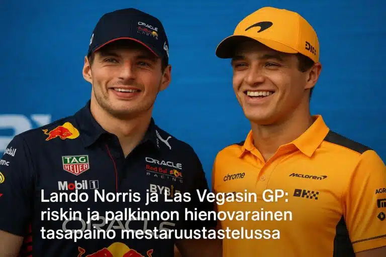 Lando Norris starttaa Las Vegasin GP:hen paalupaikalta Max Verstappen rinnallaan. Lue, miten Norris tasapainottelee riskin ja palkinnon välillä taistellessaan uransa ensimmäisestä Formula 1 -maailmanmestaruudesta.