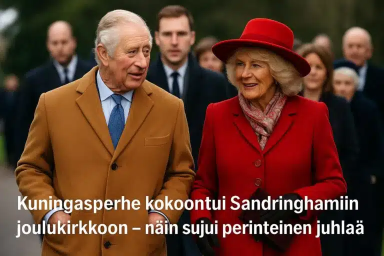 Kuningas Charles, kuningatar Camilla ja Walesin prinssipari kokoontuivat Sandringhamin perinteiseen joulupäivän kirkkoon. Lue, ketkä kuninkaalliset olivat paikalla, miten prinssi Andrew’n kohut vaikuttavat perheeseen ja mitä kuningas kertoi joulupuheessaan.